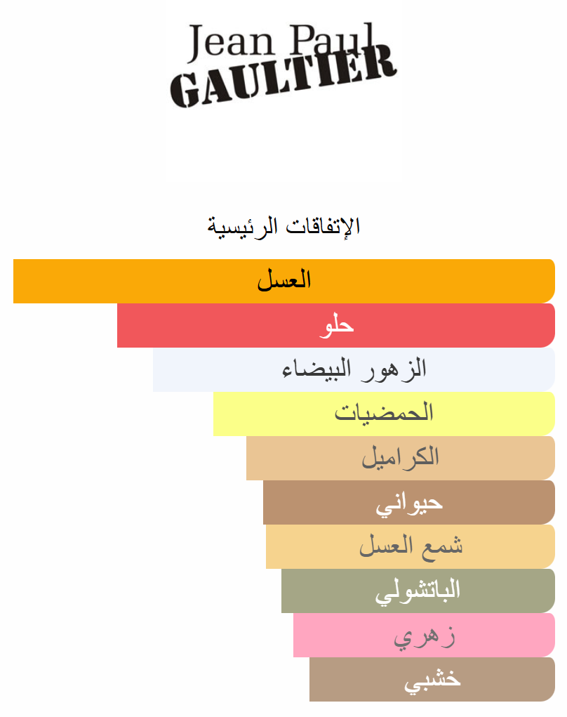 - القاعدة: الباتشولي، الكراميل، العرقسوس، شمع العسل